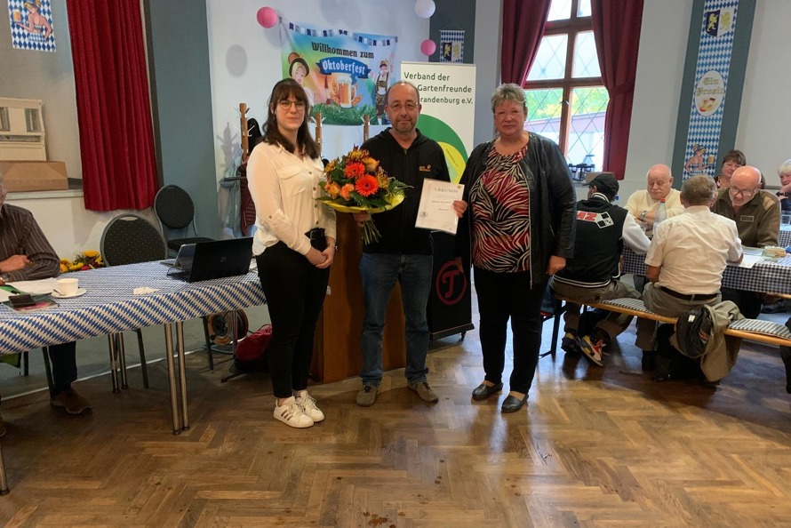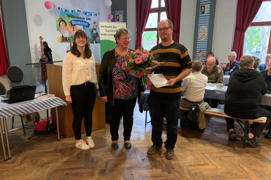 Die ersten vier Jahre unter dem neu gegründeten Verband der Gartenfreunde Südbrandenburg e.V. (VSBB) sind nun schon wieder um und so stand die erste Wahl seit der Gründerversammlung an. Die Mitgliederversammlung fand am 11.10.2025 in Finsterwalde in der Gaststätte „Erholung“ statt. Insgesamt nahmen 80 % der Mitgliedsgartenvereine daran teil und wählten nicht nur erfolgreich einen neuen Vorstand, sondern nahmen wieder interessante Informationen mit nach Hause. Der neue Versicherungspartner, Vertreter der LVM-Versicherung stellten die überarbeiteten Konzepte ab 2026 den Mitgliedern vor. Außerdem wurde durch die Firma Roth Möglichkeiten für Abwassersammelbehälter vorgestellt. Eine Besonderheit an dem Tag war u.a. auch die Ehrung von einigen Gartenfreunden. So wurde Walter Gottschling vom KGV „Am Sportplatz“ e.V. in Missen in seinen wohlverdienten Ruhestand nach über 40 Jahren Vorsitz verabschiedet. Gartenfreund Mario Loeper, Vorsitzender „Jugend“ e.V. in Lübbenau und Gartenfreund David Gruss, Vorsitzender „Stadtrand“ e.V. in Lübbenau wurden jeweils mit der Ehrennadel des Landesverbandes in Bronze für ihre herausragende Tätigkeit im Kleingartenverein geehrt. Gartenfreundin Andrea Metelka erhielt für ihr besonderes Engagement im KGV „Am Baumschulenweg“ e.V. in Doberlug-Kirchhain und ihre Tätigkeit als mehrjährige Vorsitzende sogar die Ehrennadel des Landesverbandes in Silber überreicht. Nach vielen Jahren Vorstandsarbeit im ehemaligen Bezirksverband Calau der Gartenfreunde e.V. und im VSBB wurde Martin Kreuzberg aus Altdöbern ebenfalls in den Ruhestand verabschiedet. Für sein unermüdliches Engagement und seine Treue zur Kleingärtnerei erhielt er die Ehrenmitgliedschaft im VSBB und wurde im Ehrenbuch des VSBB verewigt.